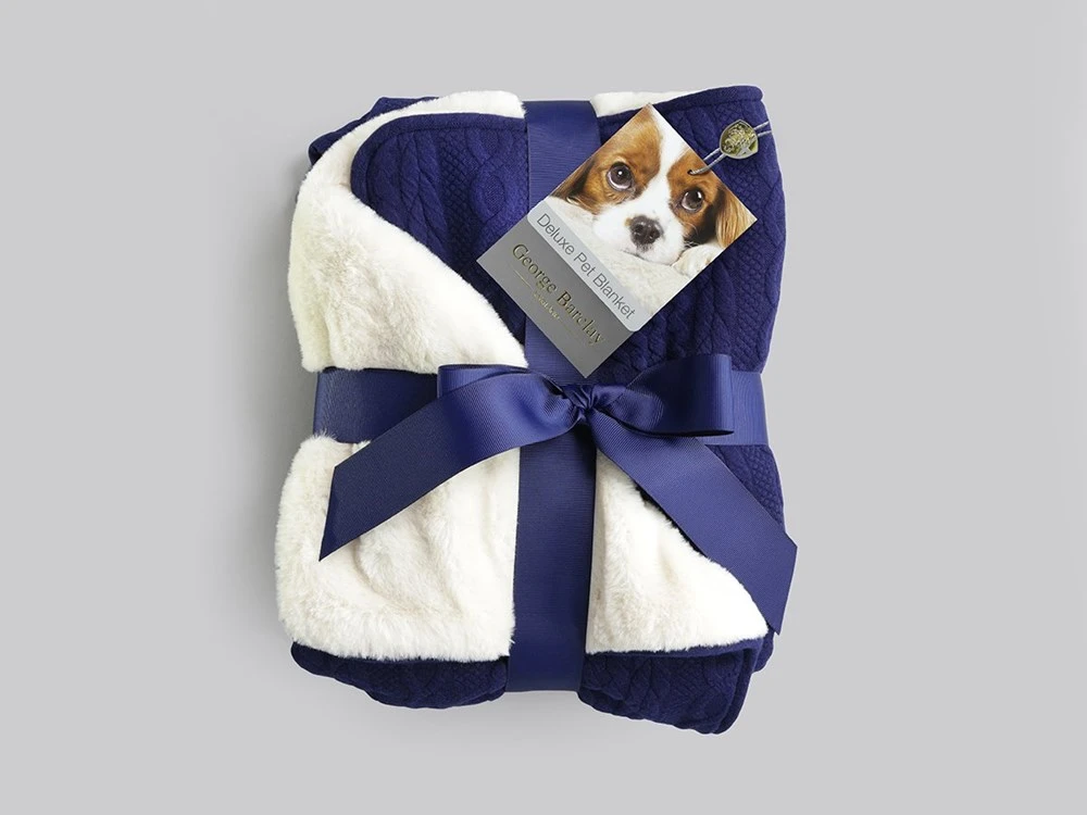 George Barclay Aran Knit Deluxe Pet Blanket Navy XL