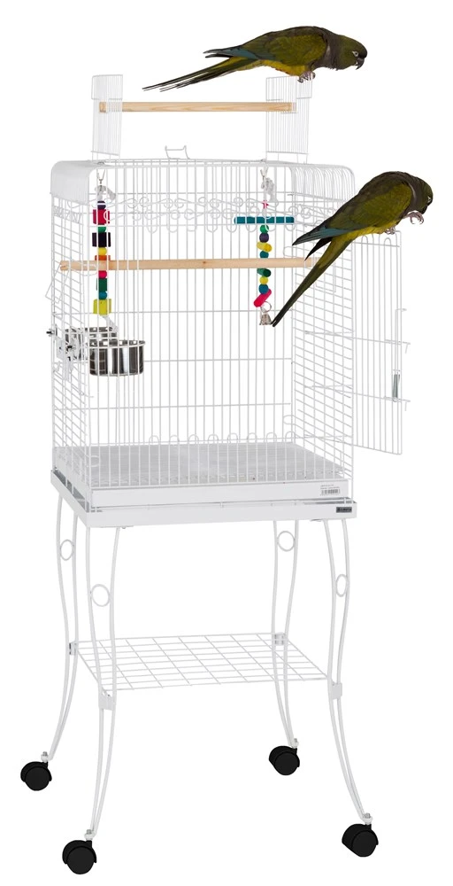 Endorsed by the World Parrot Trust, the Liberta Gama White Cage complete with 6 months free membership to the World Parrot Trust. The Liberta Gama White cage is suitable for Small Parrots, e.g. Senegals. The Gama White cage features non toxic powder coating, parrot safe openings, castors and pull out cleaning tray. The Gama White cage includes two stainless steel feeding bowls and two wooden perches. The Gama White cage can be used without stand.