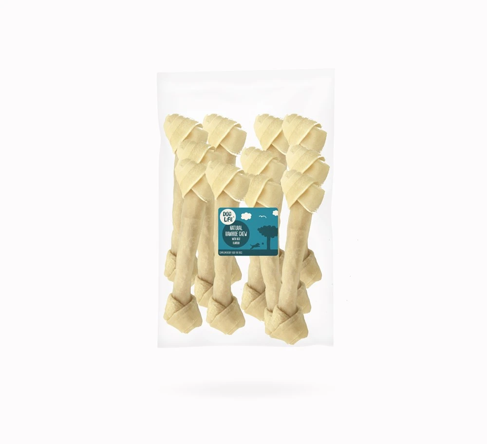The Knotted Bone is lip-smackingly delicious with a yummy beefy aroma that will tickle your dog’s taste buds. The meaty smell will waft under your dog’s sensitive nose and cause it to twitch with joy. The texture and flavour will excite his senses and he will be one happy and contented dog. Dogs love to lick and nibble on tasty bones and chomping on the hard texture of the bone will help to remove tartar and plaque and keep your dog’s teeth and gums clean and healthy and will also ease the boredom that some dogs encounter.
